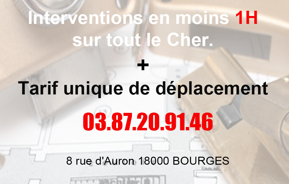 Quelque soit votre lieu d'habitation dans le Cher nous pouvons intervenir en moins de 1 heure pour toutes urgences en serrurerie.